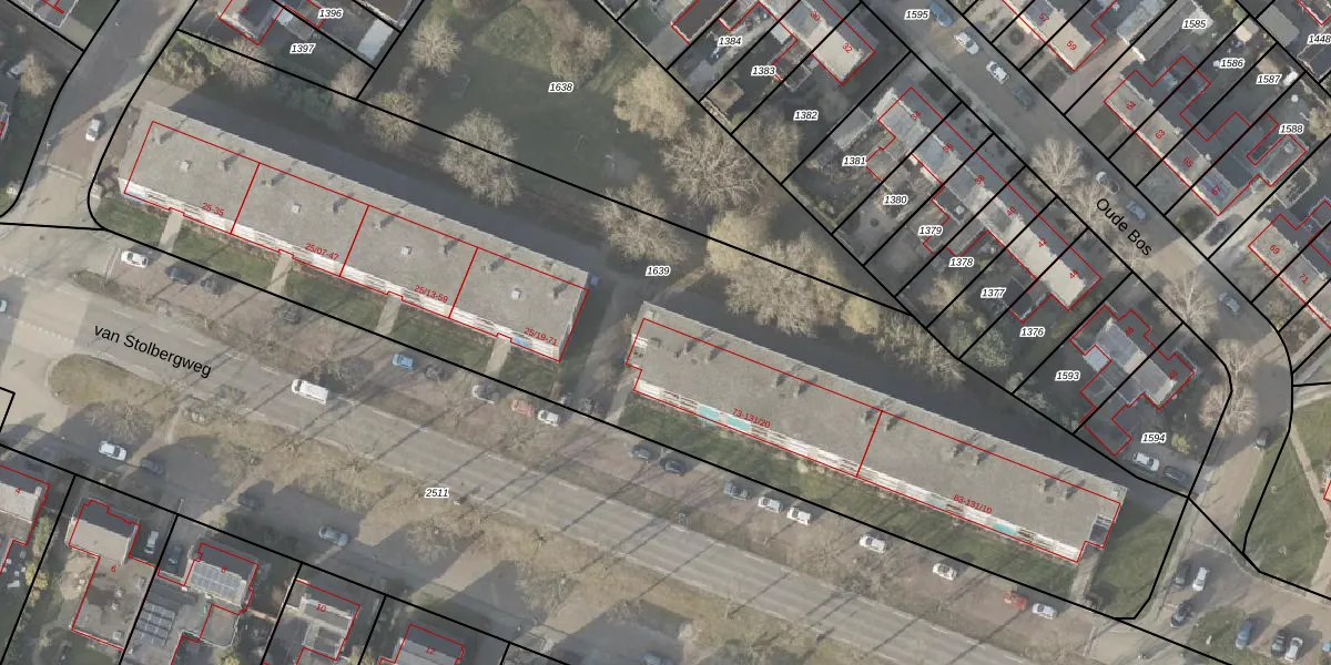 Het perceel waarop van Stolbergweg 131-19 staat heeft een oppervlakte van 5050 m². Dit is een zeer groot perceel. De perceeloppervlakte wordt geregistreerd door het Kadaster. Gedetailleerde informatie over de maten van dit perceel kunt u vinden in het rapport Kadastrale kaart met maatvoering van van Stolbergweg 131-19.