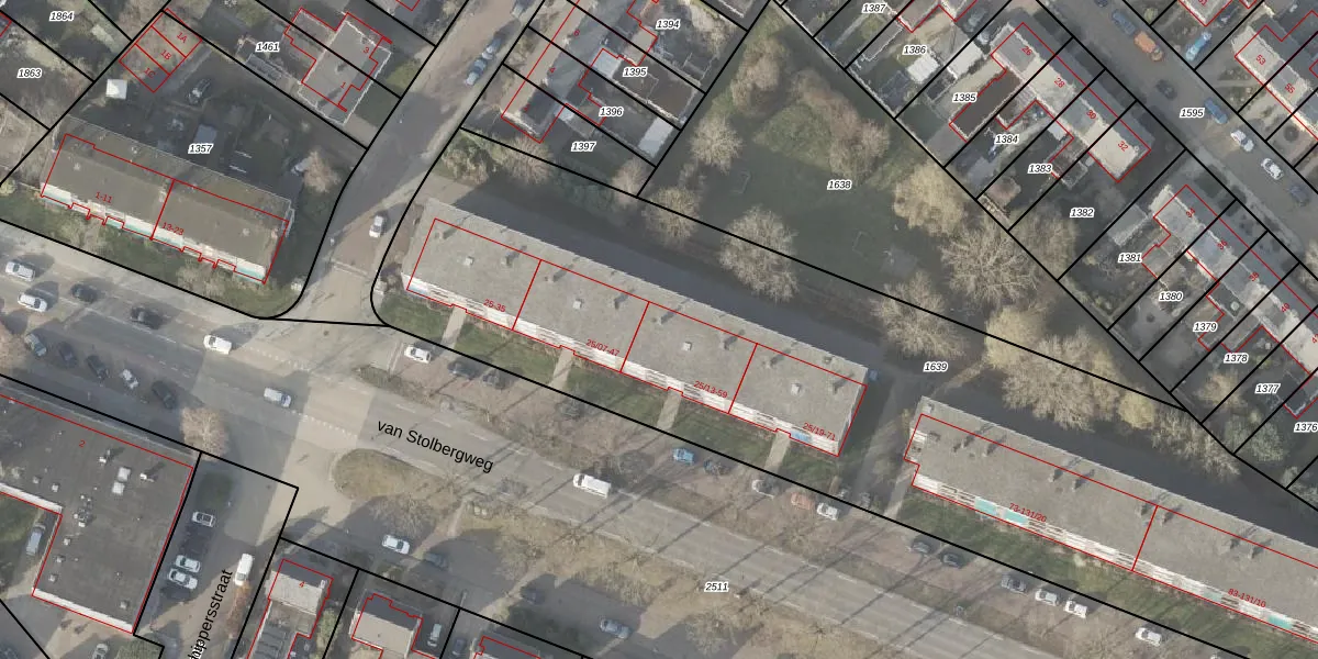 van Stolbergweg 25-13 is gelegen op kadastraal perceel VDM00I1639. Deze kadastrale aanduiding is uniek en wordt gebruikt door het Kadaster om eigendomsrechten en andere zakelijke rechten vast te leggen. Het perceel maakt onderdeel uit van de kadastrale gemeente Veendam.