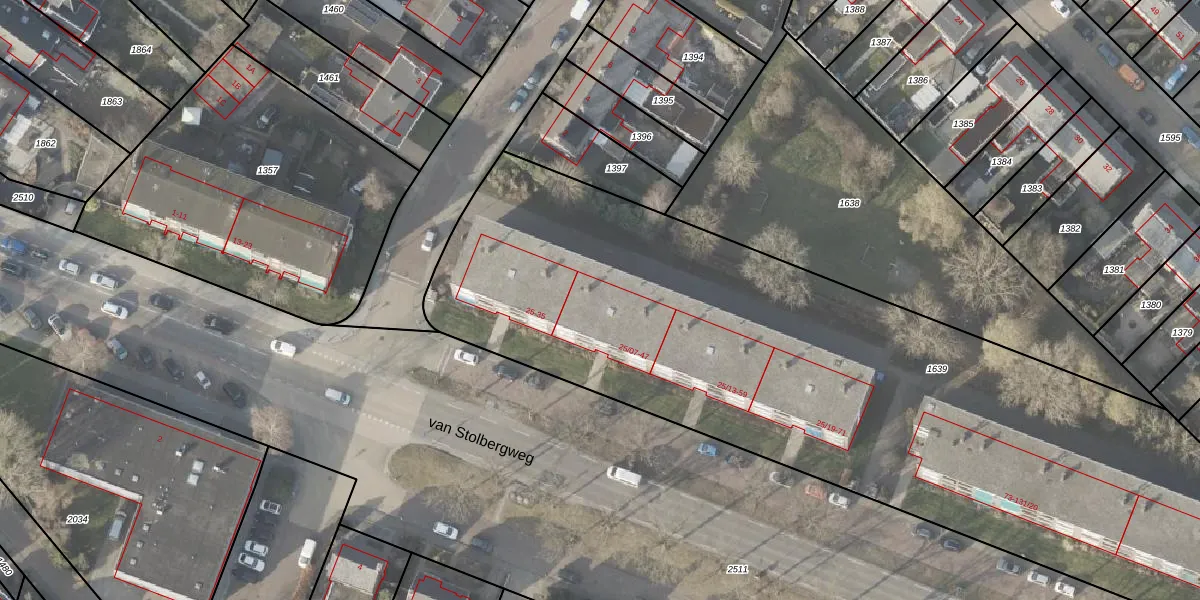 van Stolbergweg 25-08 is gelegen op kadastraal perceel VDM00I1639. Deze kadastrale aanduiding is uniek en wordt gebruikt door het Kadaster om eigendomsrechten en andere zakelijke rechten vast te leggen. Het perceel maakt onderdeel uit van de kadastrale gemeente Veendam.