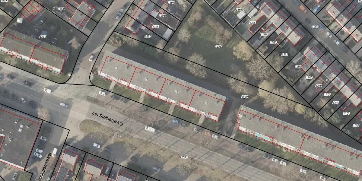 Het perceel waarop van Stolbergweg 25-16 staat heeft een oppervlakte van 5050 m². Dit is een zeer groot perceel. De perceeloppervlakte wordt geregistreerd door het Kadaster. Gedetailleerde informatie over de maten van dit perceel kunt u vinden in het rapport Kadastrale kaart met maatvoering van van Stolbergweg 25-16.
