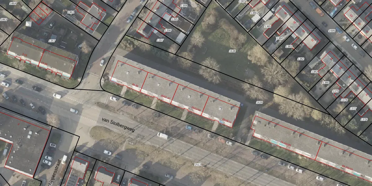 van Stolbergweg 25-14 is gelegen op kadastraal perceel VDM00I1639. Deze kadastrale aanduiding is uniek en wordt gebruikt door het Kadaster om eigendomsrechten en andere zakelijke rechten vast te leggen. Het perceel maakt onderdeel uit van de kadastrale gemeente Veendam.