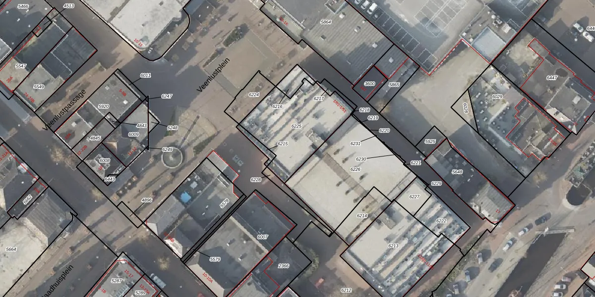 Veenlustplein 1-50 is gelegen op kadastraal perceel VDM00D6225. Deze kadastrale aanduiding is uniek en wordt gebruikt door het Kadaster om eigendomsrechten en andere zakelijke rechten vast te leggen. Het perceel maakt onderdeel uit van de kadastrale gemeente Veendam.