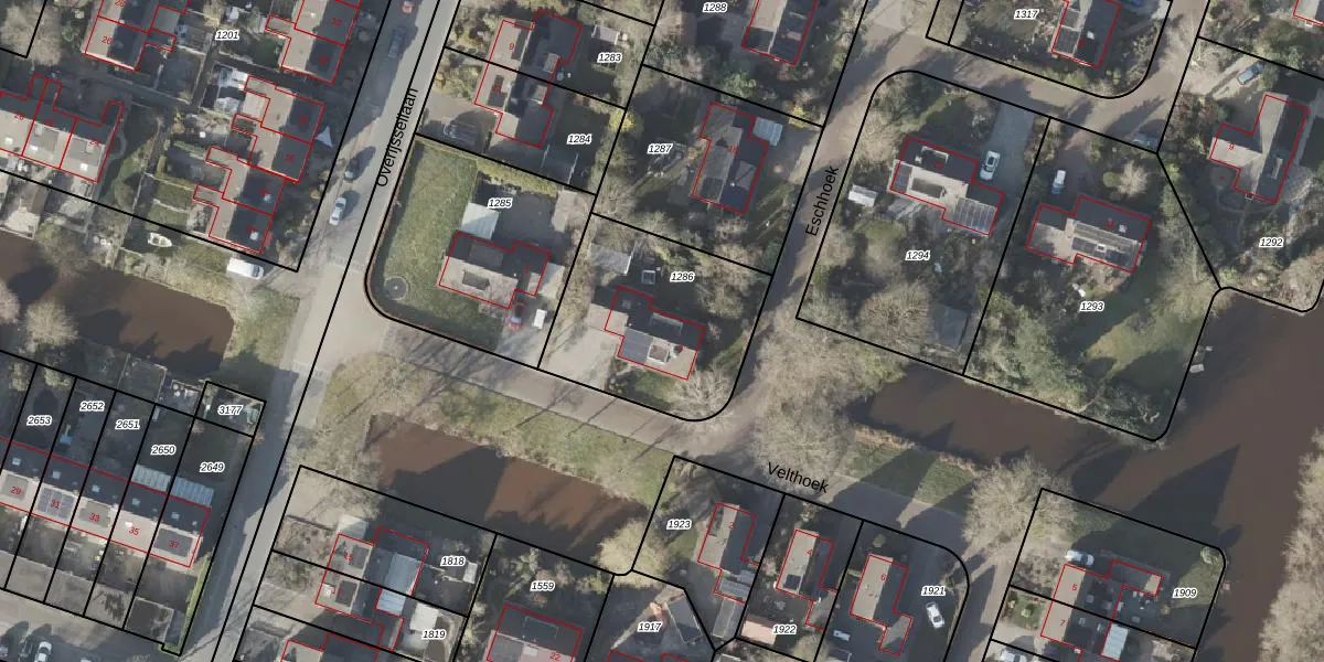 Het perceel waarop Velthoek 3 staat heeft een oppervlakte van 717 m². Dit is een groot perceel. De perceeloppervlakte wordt geregistreerd door het Kadaster. Gedetailleerde informatie over de maten van dit perceel kunt u vinden in het rapport Kadastrale kaart met maatvoering van Velthoek 3.