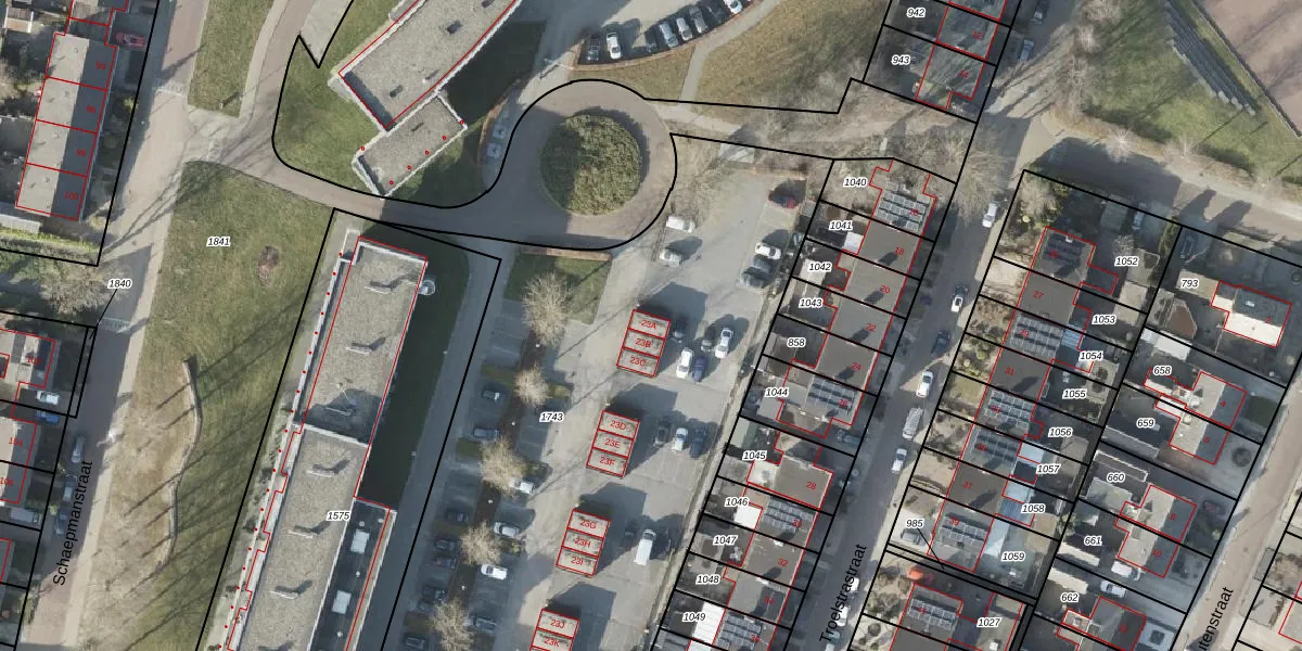 Het perceel waarop Voormolenstraat 23-A staat heeft een oppervlakte van 3758 m². Dit is een zeer groot perceel. De perceeloppervlakte wordt geregistreerd door het Kadaster. Gedetailleerde informatie over de maten van dit perceel kunt u vinden in het rapport Kadastrale kaart met maatvoering van Voormolenstraat 23-A.