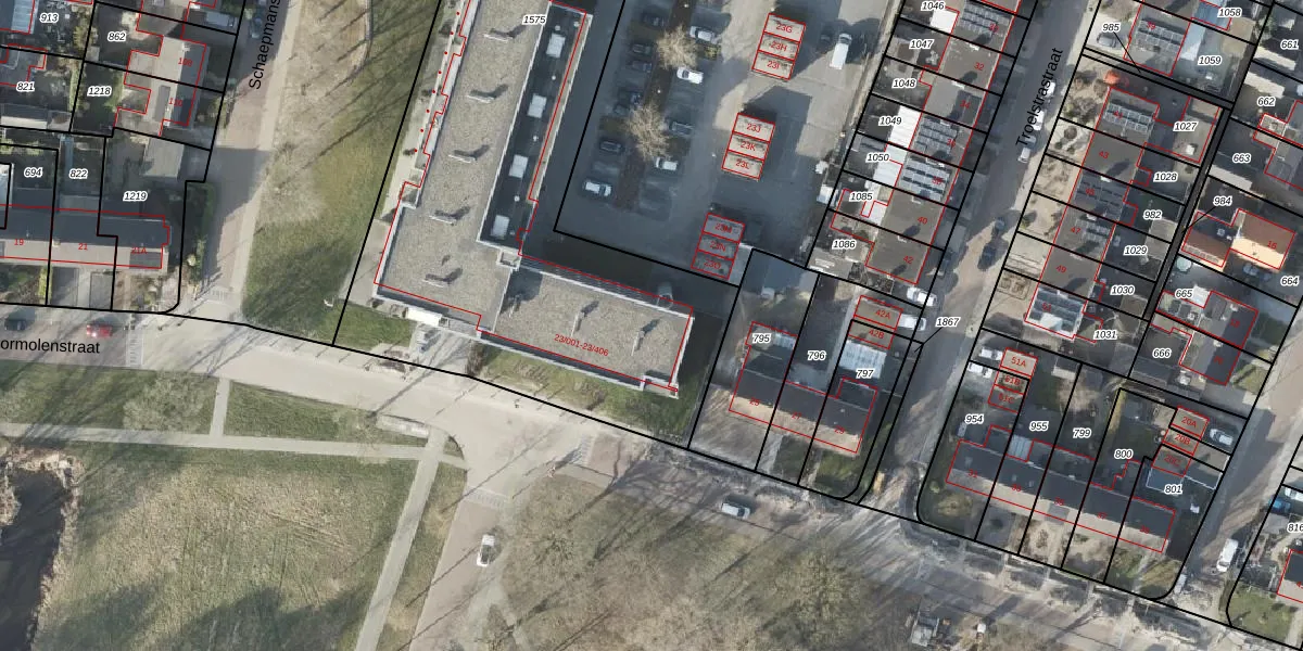 Het perceel waarop Voormolenstraat 23-111 staat heeft een oppervlakte van 3500 m². Dit is een zeer groot perceel. De perceeloppervlakte wordt geregistreerd door het Kadaster. Gedetailleerde informatie over de maten van dit perceel kunt u vinden in het rapport Kadastrale kaart met maatvoering van Voormolenstraat 23-111.