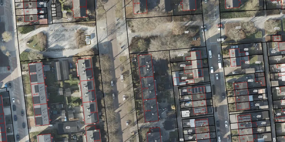 Het perceel waarop het adres ligt is VDM00-L-429. De afkorting 'VDM00' staat voor kadastrale gemeente Veendam. De gemiddelde perceelgrootte in Veendam is 4970,45 m². Dit perceel is kleiner: de perceeloppervlakte bedraagt 3463 m². Het kleinste perceel in de kadastrale gemeente is 0 m² groot. De grootste perceeloppervlakte is 1,64 km². Op het perceel zijn 28 adressen aanwezig. De huidige grenzen van het perceel zijn digitaal in de Basisregistratie Kadaster (BRK) geregistreerd op 24-11-1999.