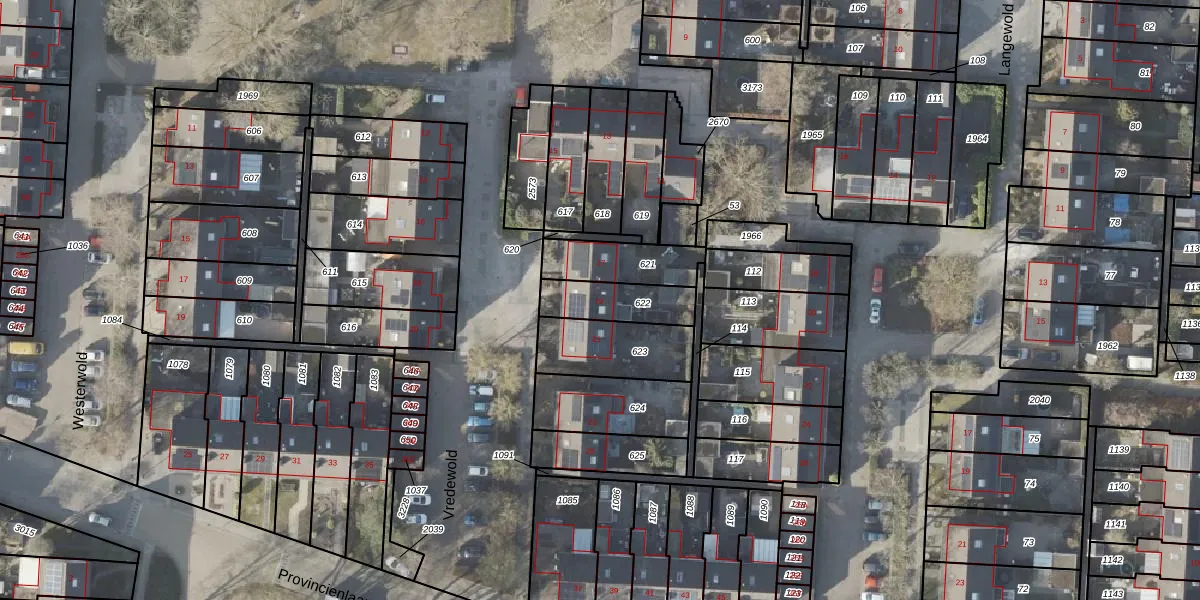 Het perceel waarop Vredewold 19 staat heeft een oppervlakte van 166 m². Dit is een middelgroot perceel. De perceeloppervlakte wordt geregistreerd door het Kadaster. Gedetailleerde informatie over de maten van dit perceel kunt u vinden in het rapport Kadastrale kaart met maatvoering van Vredewold 19.