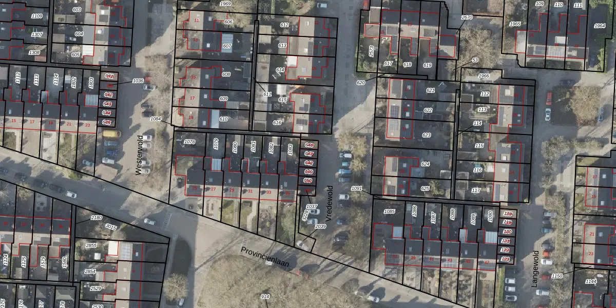 Gebruik de zoekbalk of klik op een perceel voor informatie over de adressen binnen dit perceel.
