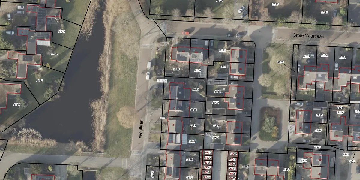 Gebruik de zoekbalk of klik op een perceel voor informatie over de adressen binnen dit perceel.