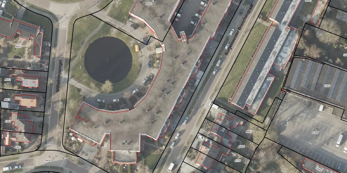 Het perceel waarop Wilhelminasingel 12-21 staat heeft een oppervlakte van 8103 m². Dit is een zeer groot perceel. De perceeloppervlakte wordt geregistreerd door het Kadaster. Gedetailleerde informatie over de maten van dit perceel kunt u vinden in het rapport Kadastrale kaart met maatvoering van Wilhelminasingel 12-21.