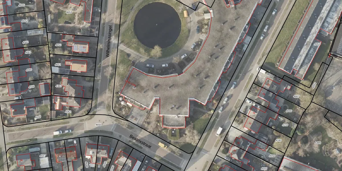 Het perceel waarop Wilhelminasingel 12-37 staat heeft een oppervlakte van 8103 m². Dit is een zeer groot perceel. De perceeloppervlakte wordt geregistreerd door het Kadaster. Gedetailleerde informatie over de maten van dit perceel kunt u vinden in het rapport Kadastrale kaart met maatvoering van Wilhelminasingel 12-37.