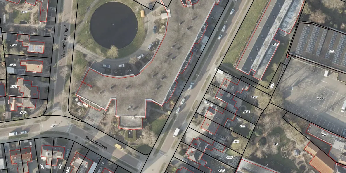 Het perceel waarop Wilhelminasingel 12-72 staat heeft een oppervlakte van 8103 m². Dit is een zeer groot perceel. De perceeloppervlakte wordt geregistreerd door het Kadaster. Gedetailleerde informatie over de maten van dit perceel kunt u vinden in het rapport Kadastrale kaart met maatvoering van Wilhelminasingel 12-72.