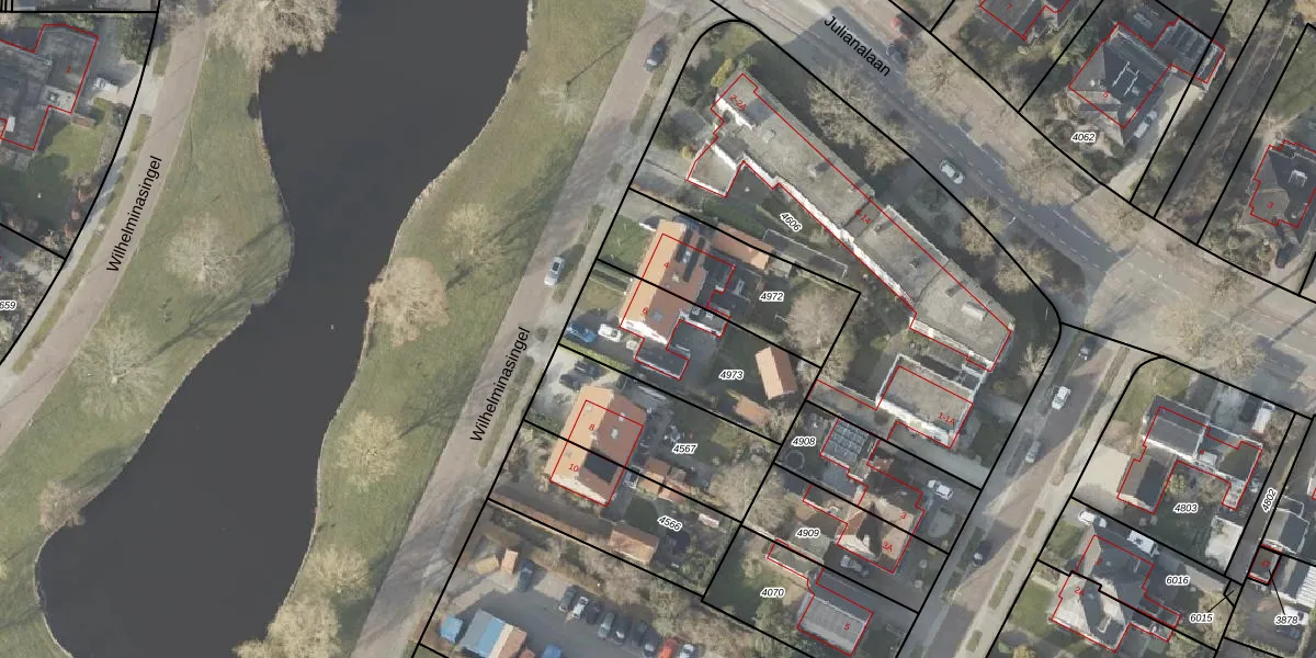 Het perceel waarop Wilhelminasingel 6 staat heeft een oppervlakte van 526 m². Dit is een groot perceel. De perceeloppervlakte wordt geregistreerd door het Kadaster. Gedetailleerde informatie over de maten van dit perceel kunt u vinden in het rapport Kadastrale kaart met maatvoering van Wilhelminasingel 6.