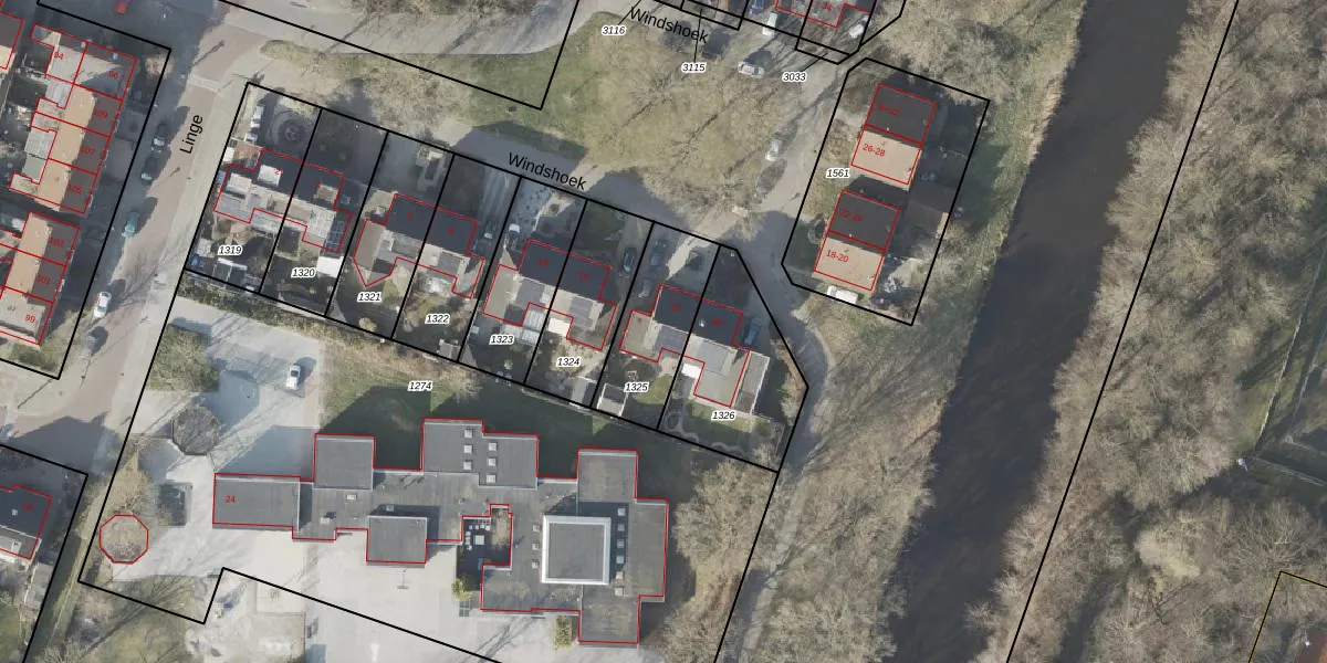 Het perceel waarop Windshoek 14 staat heeft een oppervlakte van 315 m². Dit is een groot perceel. De perceeloppervlakte wordt geregistreerd door het Kadaster. Gedetailleerde informatie over de maten van dit perceel kunt u vinden in het rapport Kadastrale kaart met maatvoering van Windshoek 14.
