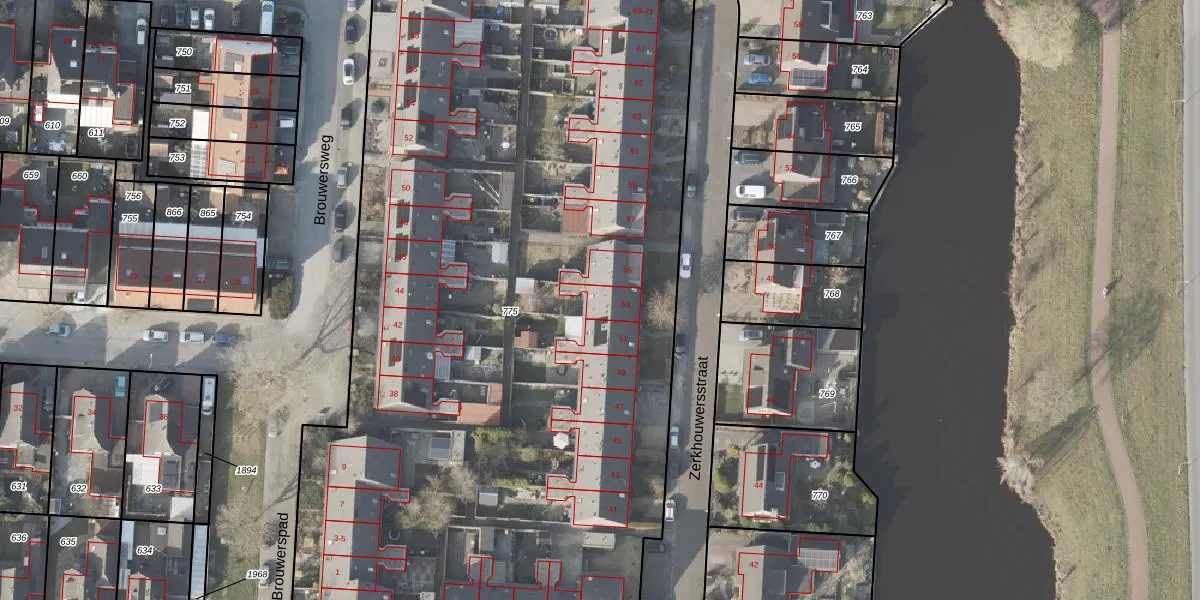 Het perceel waarop Zerkhouwersstraat 53 staat heeft een oppervlakte van 6362 m². Dit is een zeer groot perceel. De perceeloppervlakte wordt geregistreerd door het Kadaster. Gedetailleerde informatie over de maten van dit perceel kunt u vinden in het rapport Kadastrale kaart met maatvoering van Zerkhouwersstraat 53.
