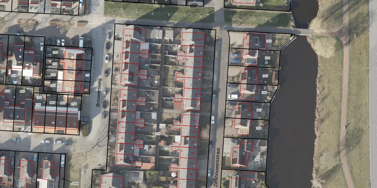 Het perceel waarop Zerkhouwersstraat 59 staat heeft een oppervlakte van 6362 m². Dit is een zeer groot perceel. De perceeloppervlakte wordt geregistreerd door het Kadaster. Gedetailleerde informatie over de maten van dit perceel kunt u vinden in het rapport Kadastrale kaart met maatvoering van Zerkhouwersstraat 59.