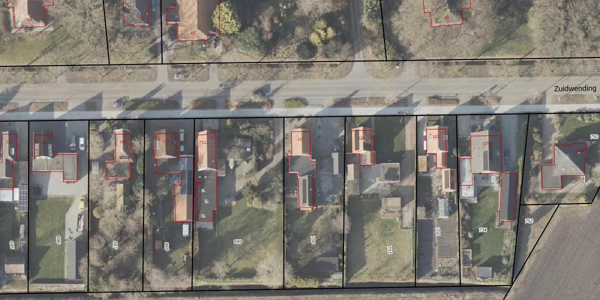 Zuidwending 117 is gelegen op kadastraal perceel VDM00P700. Deze kadastrale aanduiding is uniek en wordt gebruikt door het Kadaster om eigendomsrechten en andere zakelijke rechten vast te leggen. Het perceel maakt onderdeel uit van de kadastrale gemeente Veendam.
