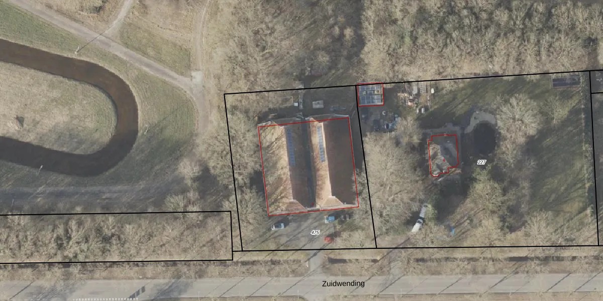Het perceel waarop Zuidwending 2 staat heeft een oppervlakte van 2345 m². Dit is een zeer groot perceel. De perceeloppervlakte wordt geregistreerd door het Kadaster. Gedetailleerde informatie over de maten van dit perceel kunt u vinden in het rapport Kadastrale kaart met maatvoering van Zuidwending 2.