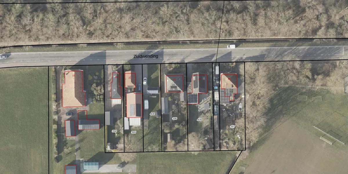 Het perceel waarop Zuidwending 23 staat heeft een oppervlakte van 760 m². Dit is een groot perceel. De perceeloppervlakte wordt geregistreerd door het Kadaster. Gedetailleerde informatie over de maten van dit perceel kunt u vinden in het rapport Kadastrale kaart met maatvoering van Zuidwending 23.