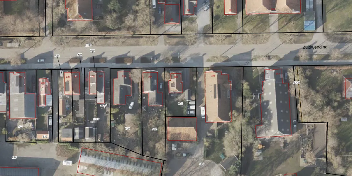 Het perceel waarop Zuidwending 239 staat heeft een oppervlakte van 490 m². Dit is een groot perceel. De perceeloppervlakte wordt geregistreerd door het Kadaster. Gedetailleerde informatie over de maten van dit perceel kunt u vinden in het rapport Kadastrale kaart met maatvoering van Zuidwending 239.