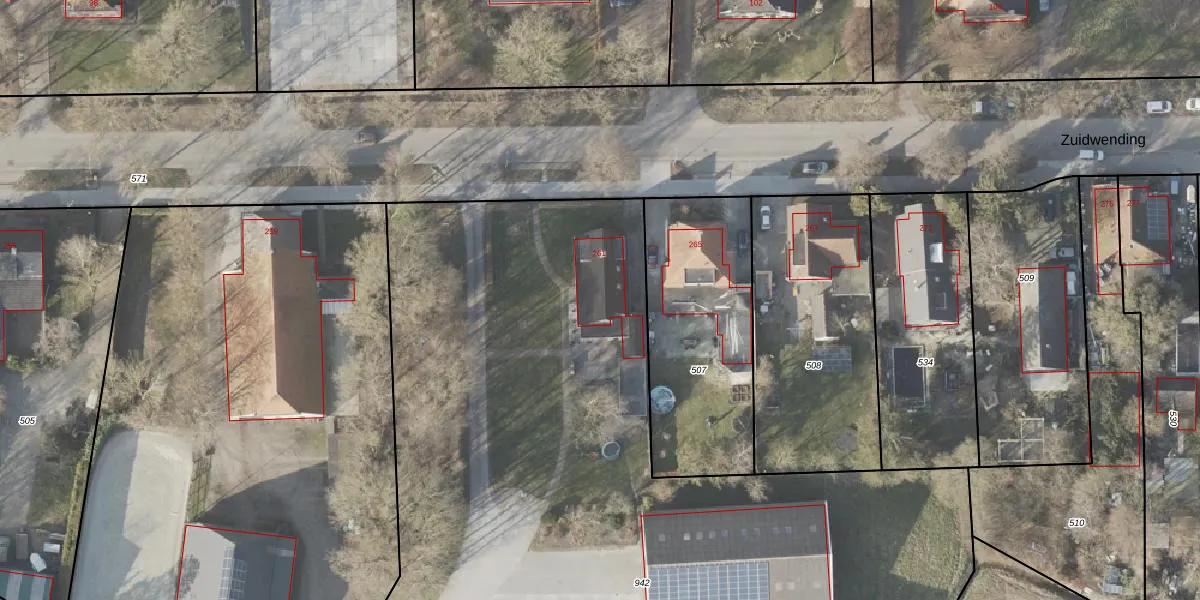 Zuidwending 261 is gelegen op kadastraal perceel VDM00P942. Deze kadastrale aanduiding is uniek en wordt gebruikt door het Kadaster om eigendomsrechten en andere zakelijke rechten vast te leggen. Het perceel maakt onderdeel uit van de kadastrale gemeente Veendam.