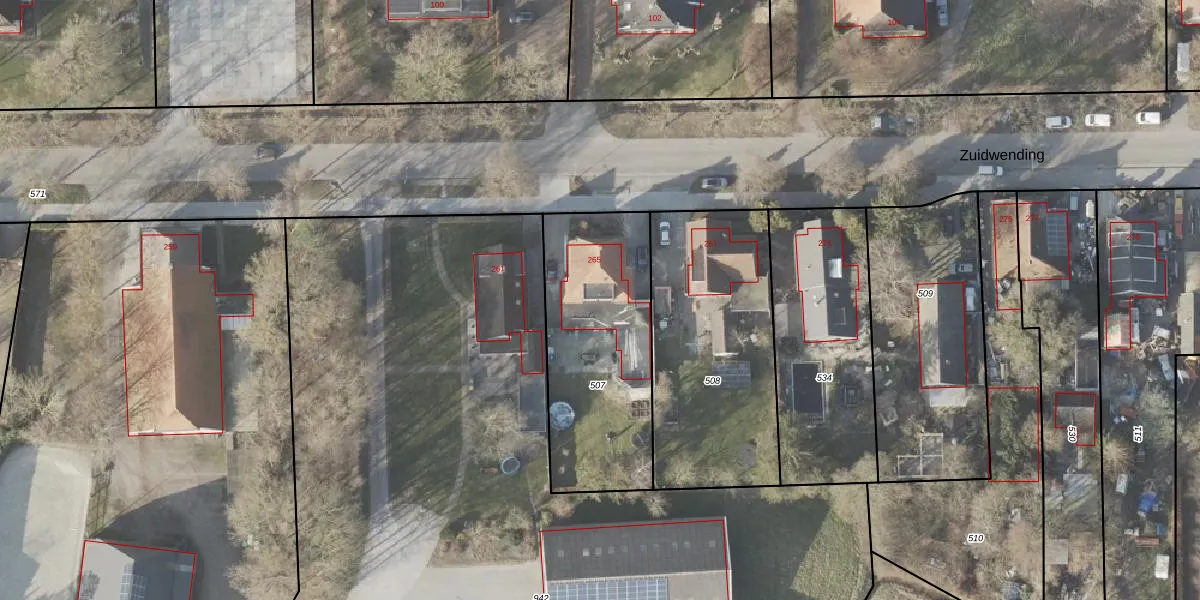 Zuidwending 265 is gelegen op kadastraal perceel VDM00P507. Deze kadastrale aanduiding is uniek en wordt gebruikt door het Kadaster om eigendomsrechten en andere zakelijke rechten vast te leggen. Het perceel maakt onderdeel uit van de kadastrale gemeente Veendam.