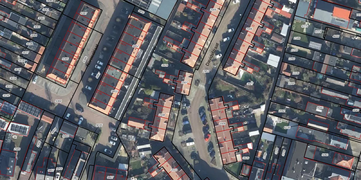 Het perceel waarop Davidsstraat 21 staat heeft een oppervlakte van 103 m². Dit is een middelgroot perceel. De perceeloppervlakte wordt geregistreerd door het Kadaster. Gedetailleerde informatie over de maten van dit perceel kunt u vinden in het rapport Kadastrale kaart met maatvoering van Davidsstraat 21.