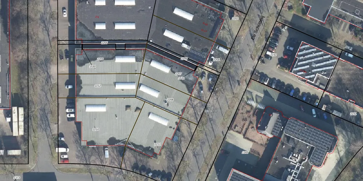 Het perceel waarop De Schutterij 13 staat heeft een oppervlakte van 687 m². Dit is een groot perceel. De perceeloppervlakte wordt geregistreerd door het Kadaster. Gedetailleerde informatie over de maten van dit perceel kunt u vinden in het rapport Kadastrale kaart met maatvoering van De Schutterij 13.