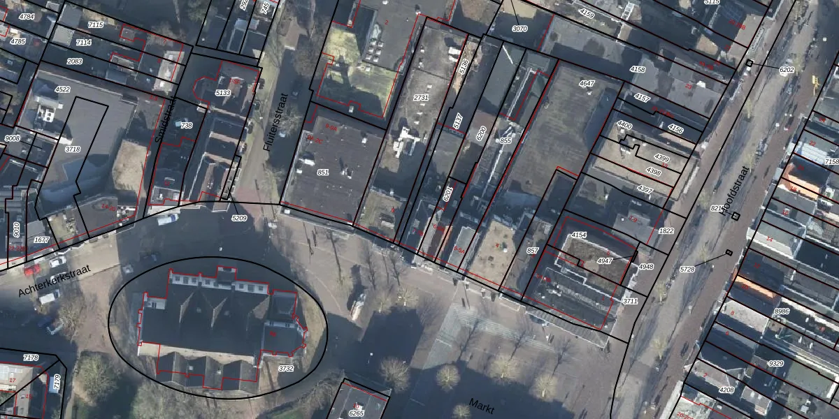 Het perceel waarop Markt 7-B staat heeft een oppervlakte van 289 m². Dit is een middelgroot perceel. De perceeloppervlakte wordt geregistreerd door het Kadaster. Gedetailleerde informatie over de maten van dit perceel kunt u vinden in het rapport Kadastrale kaart met maatvoering van Markt 7-B.