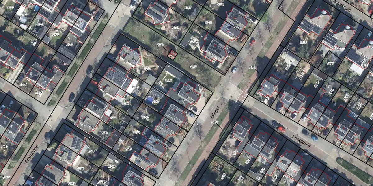 Het perceel waarop Mispel 20 staat heeft een oppervlakte van 441 m². Dit is een groot perceel. De perceeloppervlakte wordt geregistreerd door het Kadaster. Gedetailleerde informatie over de maten van dit perceel kunt u vinden in het rapport Kadastrale kaart met maatvoering van Mispel 20.