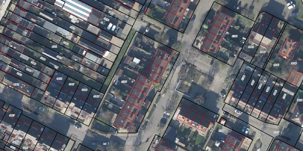 Het perceel waarop Oleander 23 staat heeft een oppervlakte van 1982 m². Dit is een zeer groot perceel. De perceeloppervlakte wordt geregistreerd door het Kadaster. Gedetailleerde informatie over de maten van dit perceel kunt u vinden in het rapport Kadastrale kaart met maatvoering van Oleander 23.