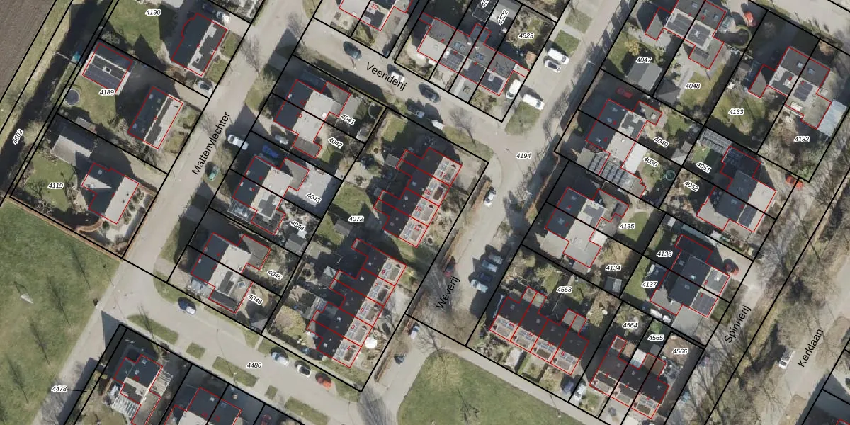 Het perceel waarop Weverij 13 staat heeft een oppervlakte van 1695 m². Dit is een zeer groot perceel. De perceeloppervlakte wordt geregistreerd door het Kadaster. Gedetailleerde informatie over de maten van dit perceel kunt u vinden in het rapport Kadastrale kaart met maatvoering van Weverij 13.