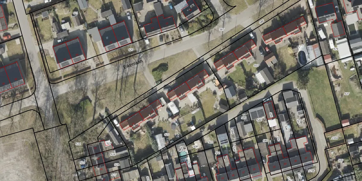 Het perceel waarop Eikenlaan 11 staat heeft een oppervlakte van 1815 m². Dit is een zeer groot perceel. De perceeloppervlakte wordt geregistreerd door het Kadaster. Gedetailleerde informatie over de maten van dit perceel kunt u vinden in het rapport Kadastrale kaart met maatvoering van Eikenlaan 11.