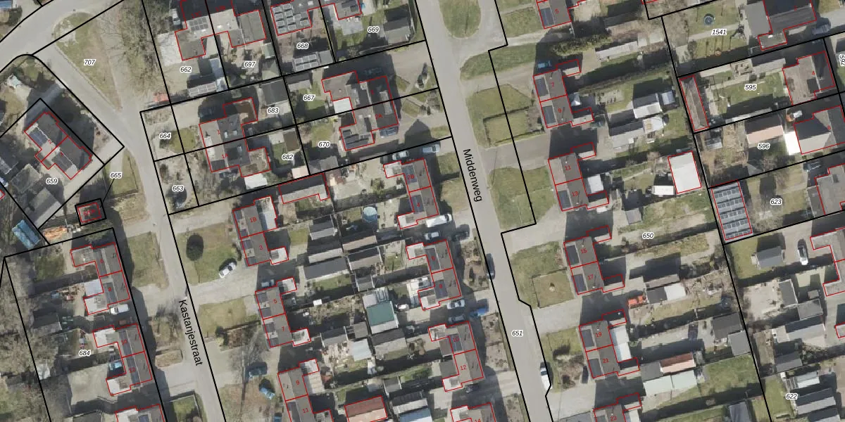 Middenweg 4 is gelegen op kadastraal perceel EMN00X1657. Deze kadastrale aanduiding is uniek en wordt gebruikt door het Kadaster om eigendomsrechten en andere zakelijke rechten vast te leggen. Het perceel maakt onderdeel uit van de kadastrale gemeente Emmen.