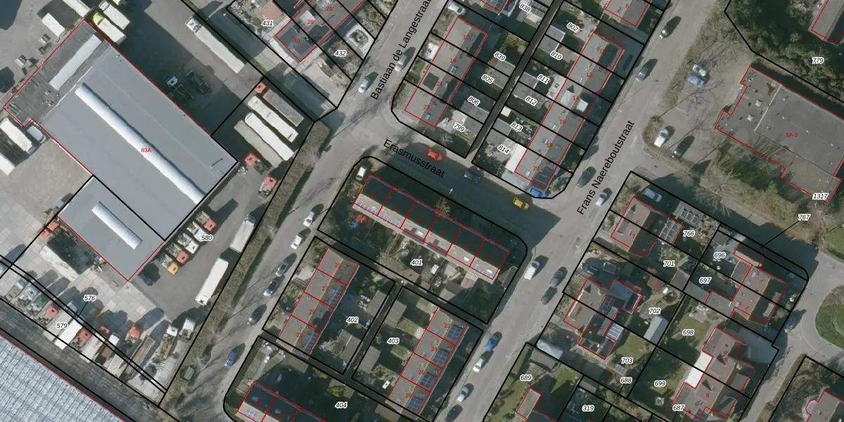 Het perceel waarop Erasmusstraat 6 staat heeft een oppervlakte van 995 m². Dit is een groot perceel. De perceeloppervlakte wordt geregistreerd door het Kadaster. Gedetailleerde informatie over de maten van dit perceel kunt u vinden in het rapport Kadastrale kaart met maatvoering van Erasmusstraat 6.