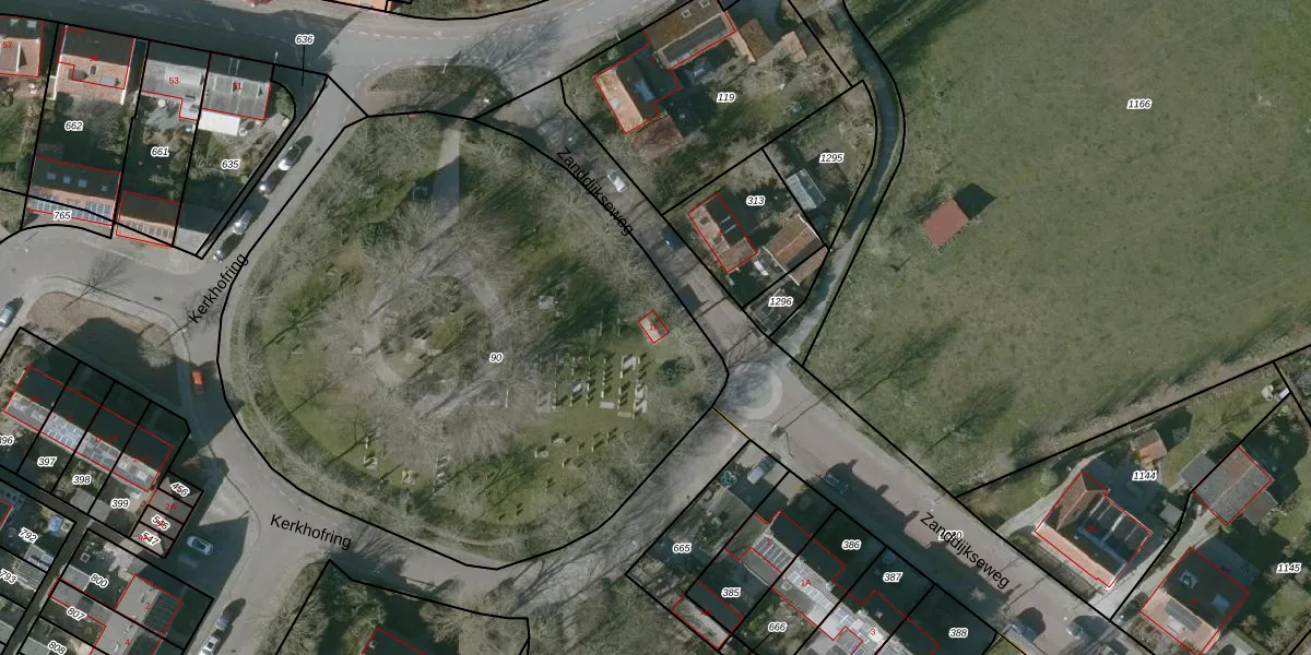 Kerkhofring 1-A is gelegen op kadastraal perceel VRE00E90. Deze kadastrale aanduiding is uniek en wordt gebruikt door het Kadaster om eigendomsrechten en andere zakelijke rechten vast te leggen. Het perceel maakt onderdeel uit van de kadastrale gemeente Veere.