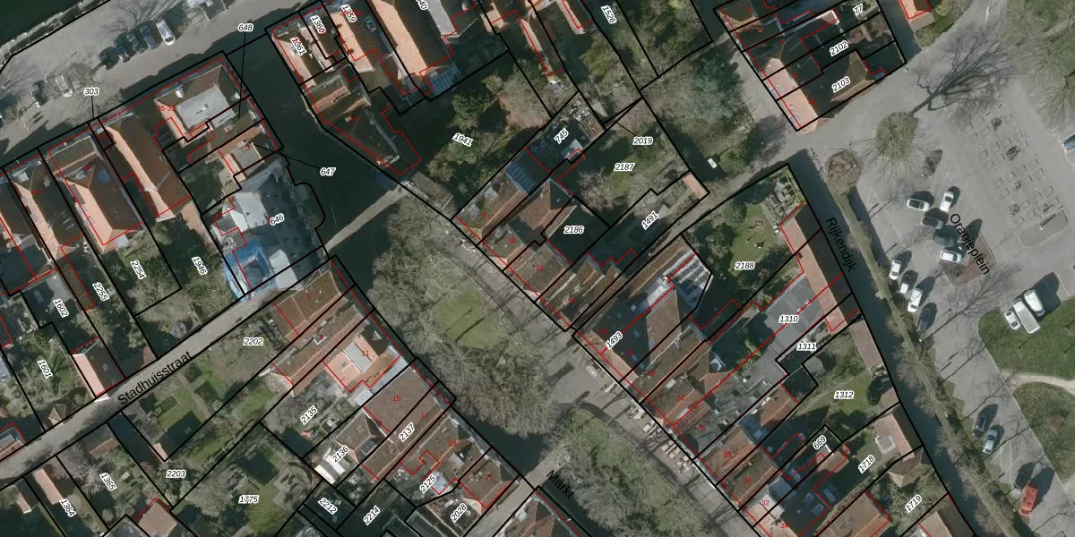 Het perceel waarop Markt 12 staat heeft een oppervlakte van 165 m². Dit is een middelgroot perceel. De perceeloppervlakte wordt geregistreerd door het Kadaster. Gedetailleerde informatie over de maten van dit perceel kunt u vinden in het rapport Kadastrale kaart met maatvoering van Markt 12.