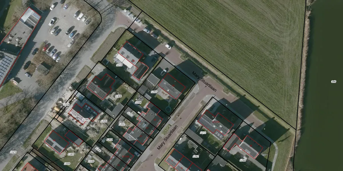 Het perceel waarop Mary Stuartlaan 29 staat heeft een oppervlakte van 595 m². Dit is een groot perceel. De perceeloppervlakte wordt geregistreerd door het Kadaster. Gedetailleerde informatie over de maten van dit perceel kunt u vinden in het rapport Kadastrale kaart met maatvoering van Mary Stuartlaan 29.