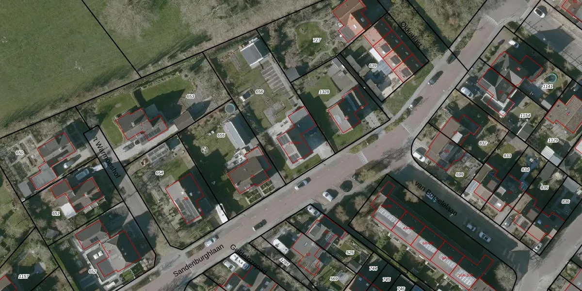 Sandenburghlaan 24 is gelegen op kadastraal perceel VRE00E656. Deze kadastrale aanduiding is uniek en wordt gebruikt door het Kadaster om eigendomsrechten en andere zakelijke rechten vast te leggen. Het perceel maakt onderdeel uit van de kadastrale gemeente Veere.