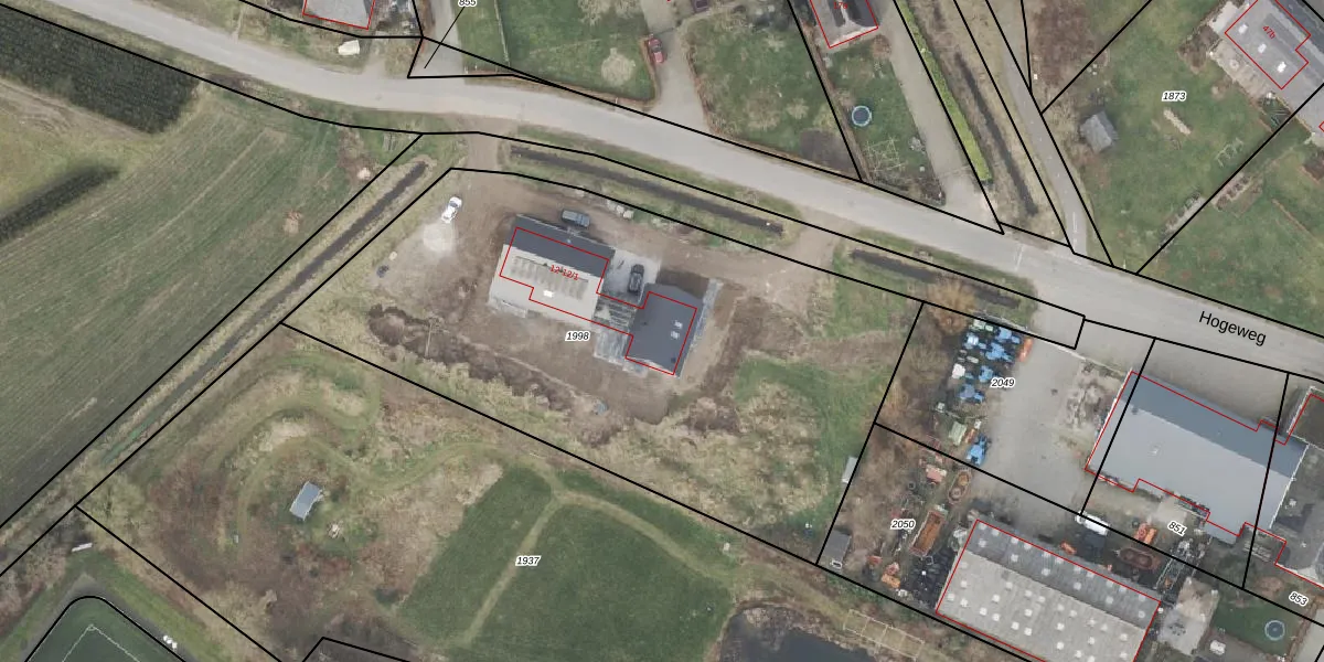 Het perceel waarop Hogeweg 12-1 staat heeft een oppervlakte van 3022 m². Dit is een zeer groot perceel. De perceeloppervlakte wordt geregistreerd door het Kadaster. Gedetailleerde informatie over de maten van dit perceel kunt u vinden in het rapport Kadastrale kaart met maatvoering van Hogeweg 12-1.