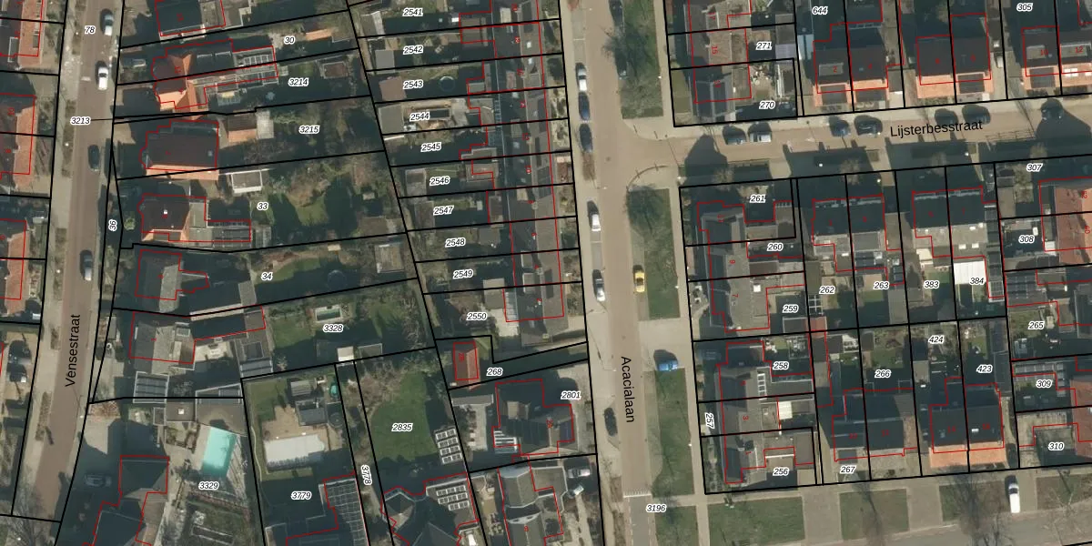 Gebruik de zoekbalk of klik op een perceel voor informatie over de adressen binnen dit perceel.