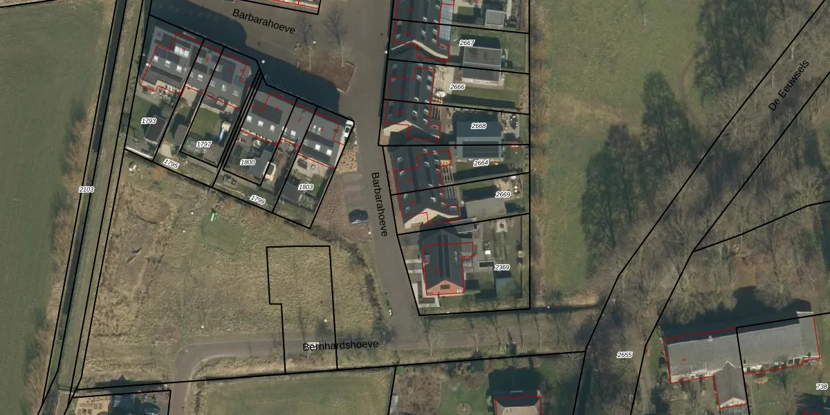Het perceel waarop Barbarahoeve 20 staat heeft een oppervlakte van 322 m². Dit is een groot perceel. De perceeloppervlakte wordt geregistreerd door het Kadaster. Gedetailleerde informatie over de maten van dit perceel kunt u vinden in het rapport Kadastrale kaart met maatvoering van Barbarahoeve 20.
