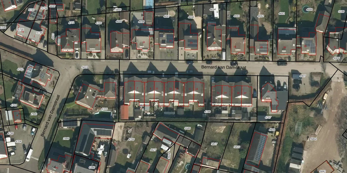 Bernard van Damstraat 13 is gelegen op kadastraal perceel VHL00F4798. Deze kadastrale aanduiding is uniek en wordt gebruikt door het Kadaster om eigendomsrechten en andere zakelijke rechten vast te leggen. Het perceel maakt onderdeel uit van de kadastrale gemeente Veghel.