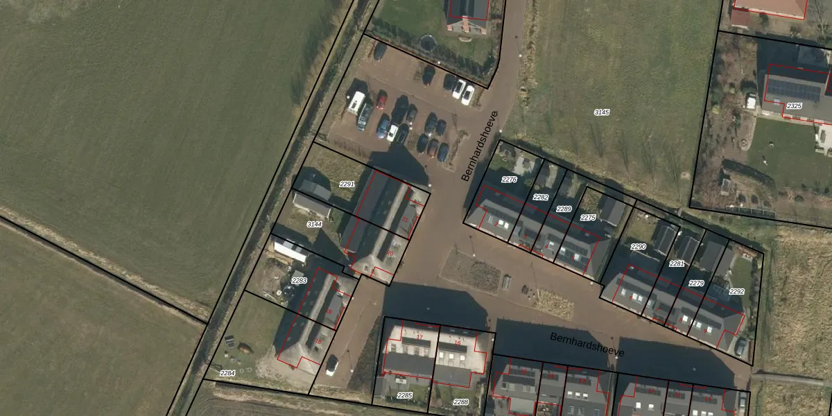 Het perceel waarop Bernhardshoeve 21 staat heeft een oppervlakte van 380 m². Dit is een groot perceel. De perceeloppervlakte wordt geregistreerd door het Kadaster. Gedetailleerde informatie over de maten van dit perceel kunt u vinden in het rapport Kadastrale kaart met maatvoering van Bernhardshoeve 21.