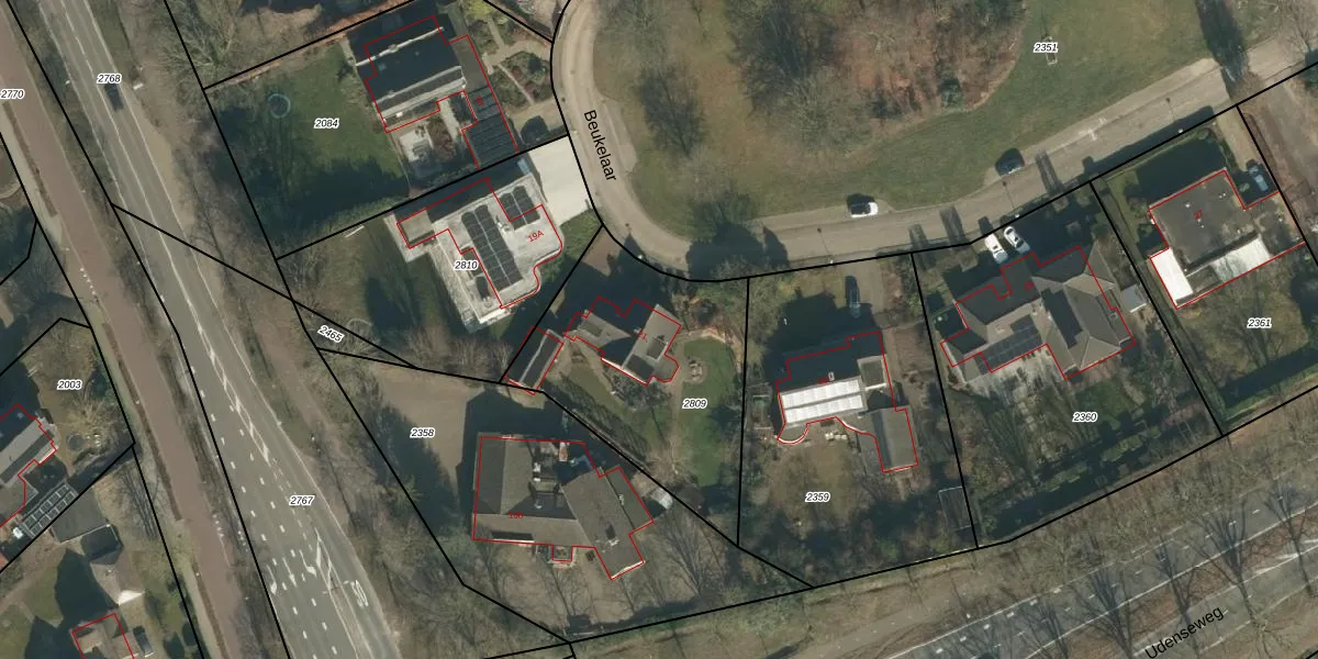 Het perceel waarop Beukelaar 21 staat heeft een oppervlakte van 965 m². Dit is een groot perceel. De perceeloppervlakte wordt geregistreerd door het Kadaster. Gedetailleerde informatie over de maten van dit perceel kunt u vinden in het rapport Kadastrale kaart met maatvoering van Beukelaar 21.