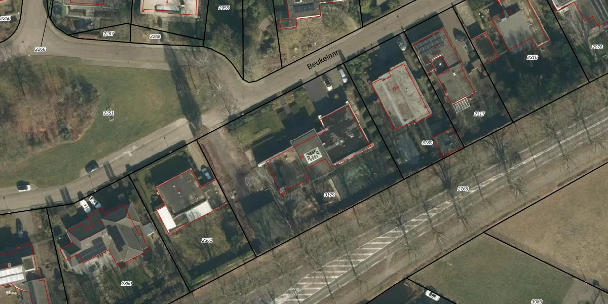 Het perceel waarop Beukelaar 29 staat heeft een oppervlakte van 2367 m². Dit is een zeer groot perceel. De perceeloppervlakte wordt geregistreerd door het Kadaster. Gedetailleerde informatie over de maten van dit perceel kunt u vinden in het rapport Kadastrale kaart met maatvoering van Beukelaar 29.