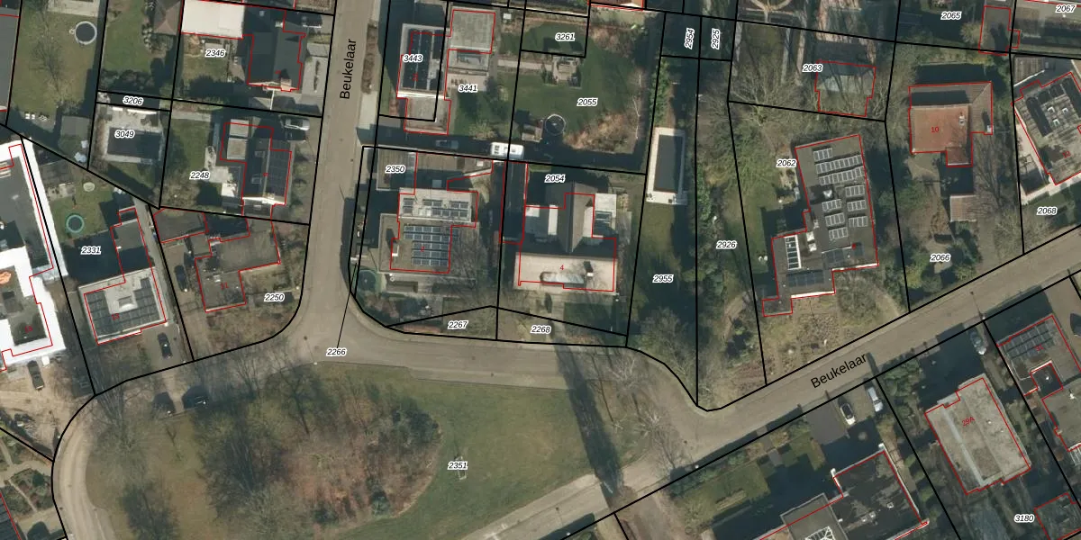 Beukelaar 4 is gelegen op kadastraal perceel VHL00G2054. Deze kadastrale aanduiding is uniek en wordt gebruikt door het Kadaster om eigendomsrechten en andere zakelijke rechten vast te leggen. Het perceel maakt onderdeel uit van de kadastrale gemeente Veghel.