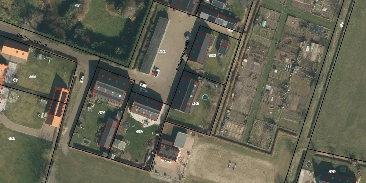 Het perceel waarop Beukelaarstraat 3-D staat heeft een oppervlakte van 732 m². Dit is een groot perceel. De perceeloppervlakte wordt geregistreerd door het Kadaster. Gedetailleerde informatie over de maten van dit perceel kunt u vinden in het rapport Kadastrale kaart met maatvoering van Beukelaarstraat 3-D.