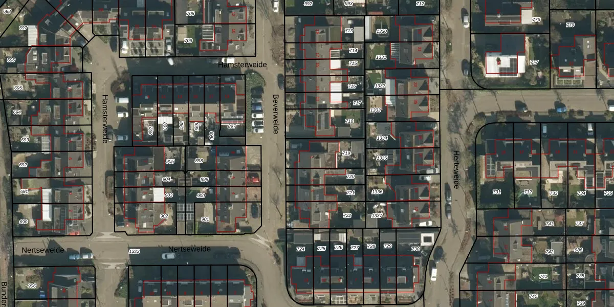 Gebruik de zoekbalk of klik op een perceel voor informatie over de adressen binnen dit perceel.