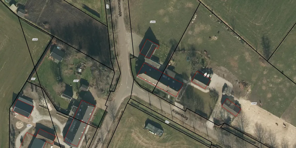 Het perceel waarop Biezendijk 33 staat heeft een oppervlakte van 2454 m². Dit is een zeer groot perceel. De perceeloppervlakte wordt geregistreerd door het Kadaster. Gedetailleerde informatie over de maten van dit perceel kunt u vinden in het rapport Kadastrale kaart met maatvoering van Biezendijk 33.